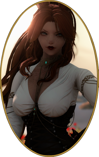 Fern Oswell is a sky pirate of remarkable repute, better known as The Red Widow of the Sanguine Widows. As deadly as she is beautiful, she has been known to strike fear into the hearts of many who happen across her airship amongst the clouds.However, for the Island of Imani, and for Asriel, she is simply Fern, one of the three Pirate Lords and master of the island's security and defenses. Alongside her Widows, she ensures that the island, and its market, remain peaceful.Fern is a straight-forward woman, with little time for those who would waste hers. Even so, to those who've grown to know her, she can be comforting and reliable, a steadfast ally who returns that with which she is met.