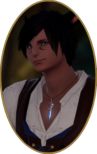As the story goes, fate conspired with the keeper of hearts to spin a web that would entangle him in a fiery dance. He fell in love. Then lost it.The gentle light of Menphina touched his tender heart and opened his eyes, only to scorn all that he had become. Ashamed of himself, he abandoned the Lambs of Dalamud for a life in opposition to the beliefs he once championed. Though he would like nothing more than to leave the past behind him, his sins crawl upon him like fleas, and a sinister secret looms over his head with the force of a guillotine's blade.